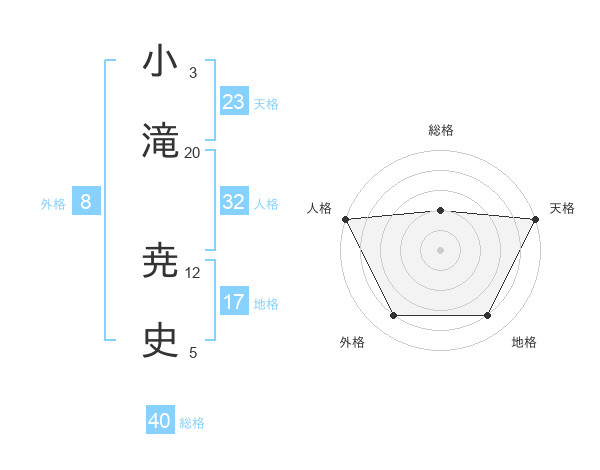 小滝 尭史さんの天格は23画の5点!