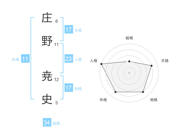 庄野 尭史さんの総格は34画の2点!