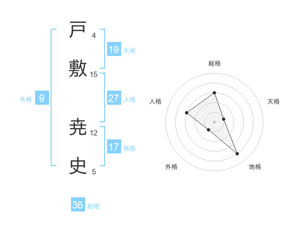 戸敷 尭史さんを姓名の画数から五運を鑑定