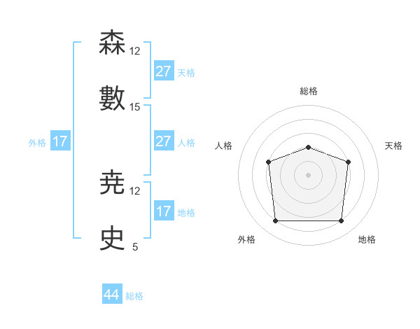 森數 尭史さんの外格は17画の4点!