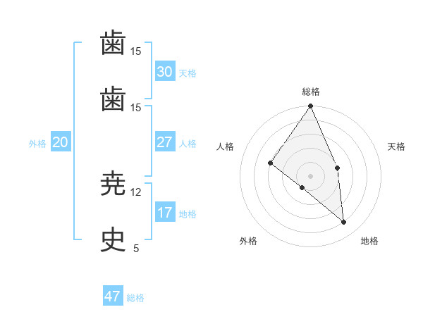 歯歯 尭史さんの総格は47画の5点!