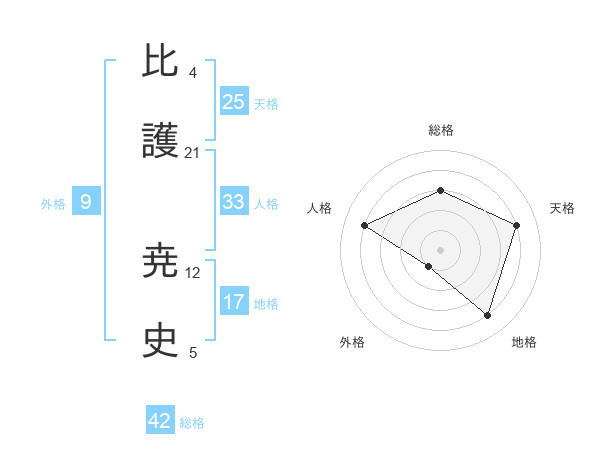 比護 尭史さんの天格は25画の4点!