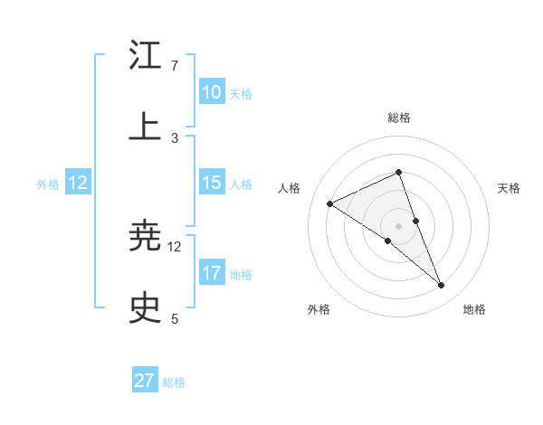 江上 尭史さんの総格は27画の3点!