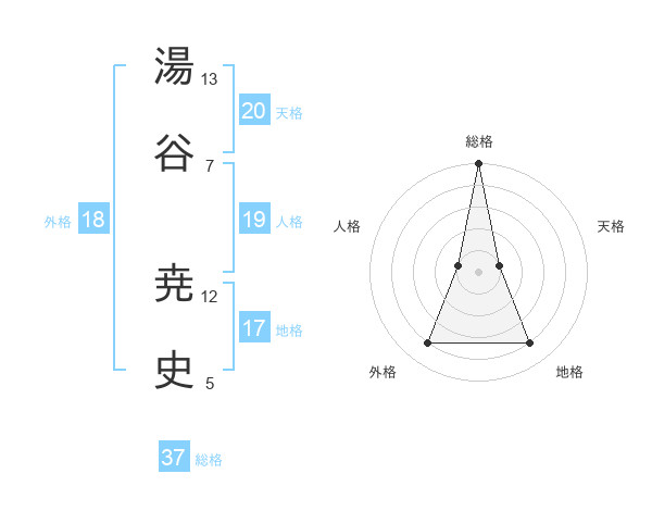 湯谷 尭史さんを姓名の画数から五運を鑑定