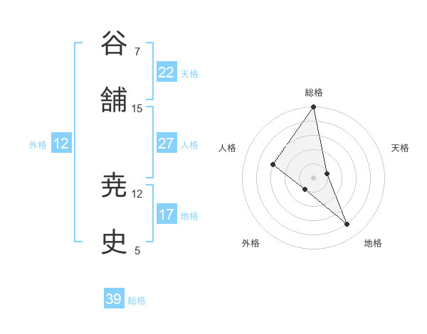 谷舗 尭史さんの総格は39画の5点!