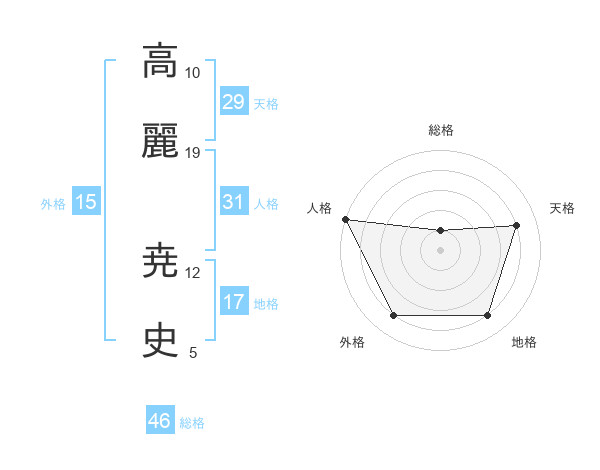 高麗 尭史さんの総格は46画の1点!