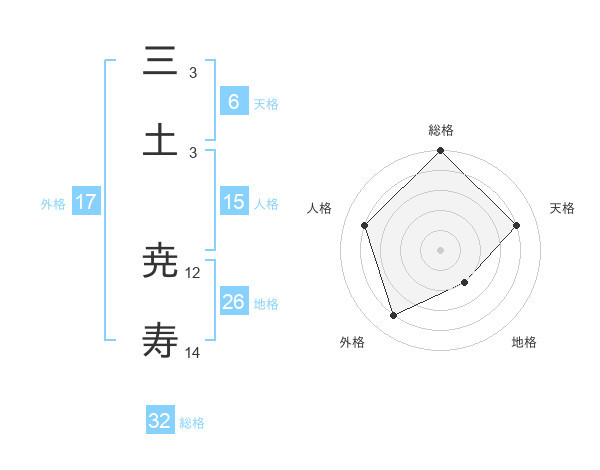 三土 尭寿さんの総格は32画の5点!