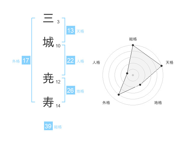 三城 尭寿さんを姓名の画数から五運を鑑定