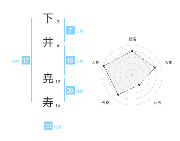 下井 尭寿さんを姓名の画数から五運を鑑定