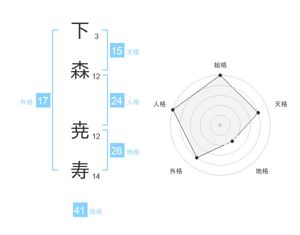 下森 尭寿さんを姓名の画数から五運を鑑定