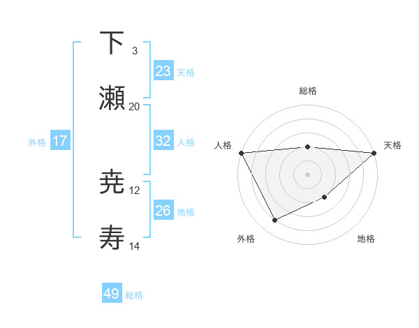 下瀬 尭寿さんの天格は23画の5点!