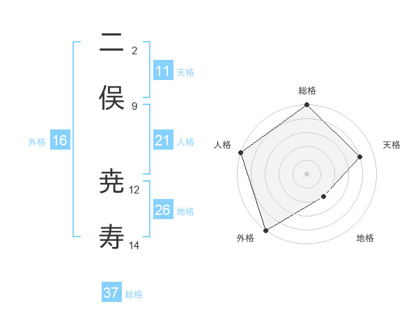 二俣 尭寿さんの外格は16画の5点!