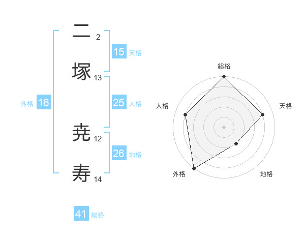 二塚 尭寿さんの天格は15画の4点!