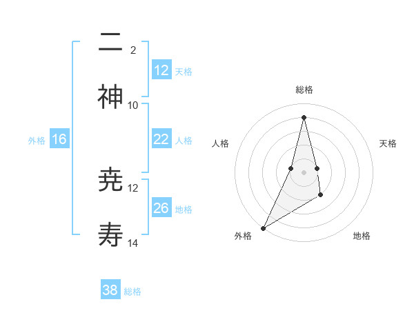 二神 尭寿さんを姓名の画数から五運を鑑定