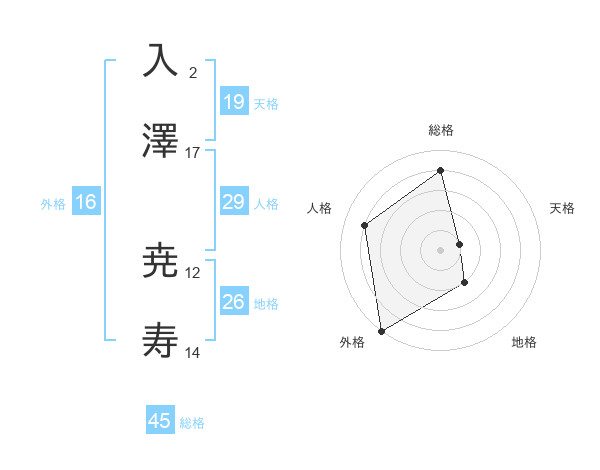 入澤 尭寿さんの総格は45画の4点!