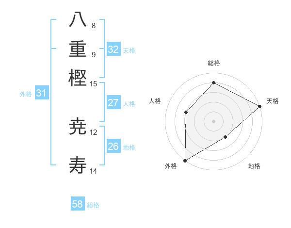 八重樫 尭寿さんを姓名の画数から五運を鑑定