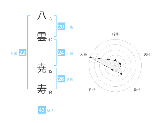 八雲 尭寿さんの外格は22画の1点!