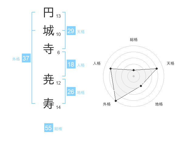 円城寺 尭寿さんの総格は55画の1点!