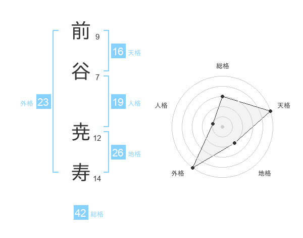 前谷 尭寿さんの外格は23画の5点!
