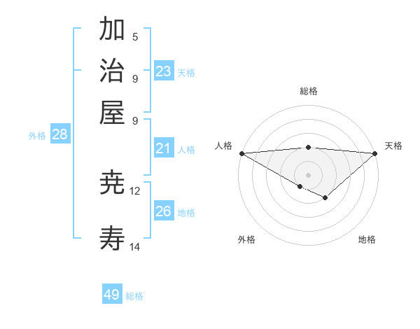 加治屋 尭寿さんを姓名の画数から五運を鑑定