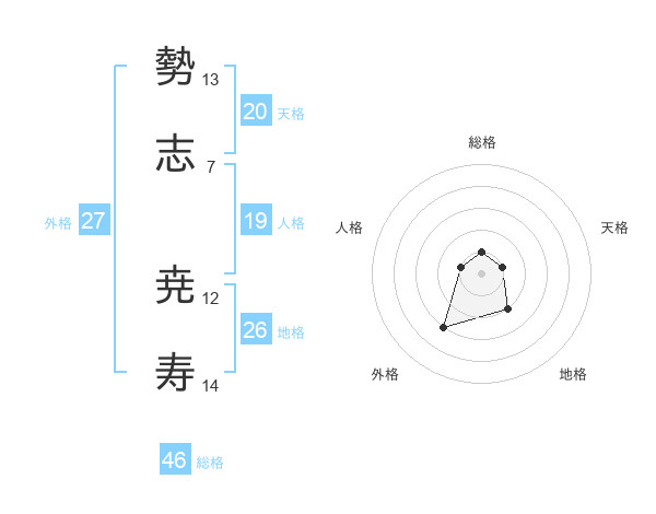 勢志 尭寿さんの総格は46画の1点!