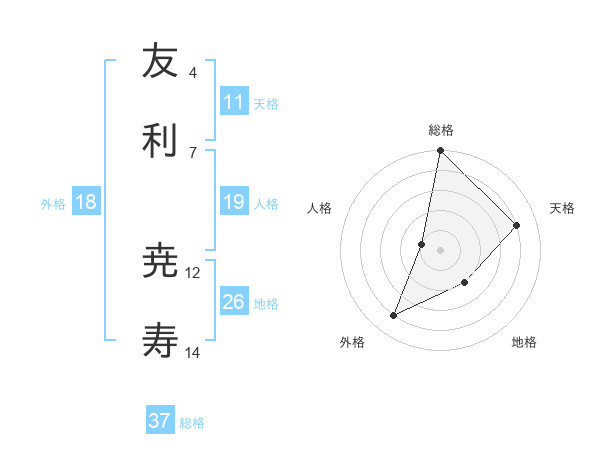 友利 尭寿さんを姓名の画数から五運を鑑定