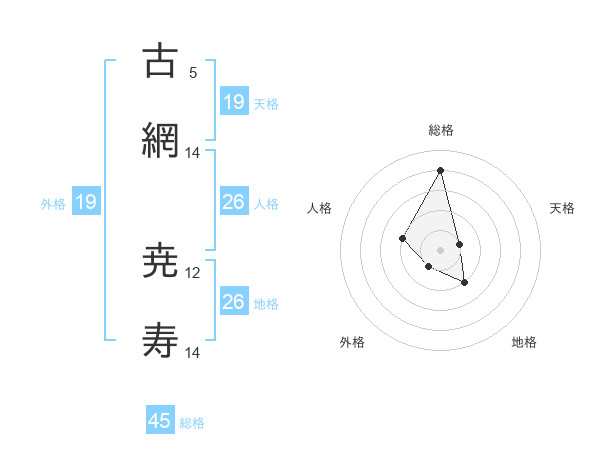 古網 尭寿さんの総格は45画の4点!