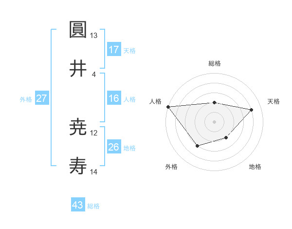 圓井 尭寿さんを姓名の画数から五運を鑑定