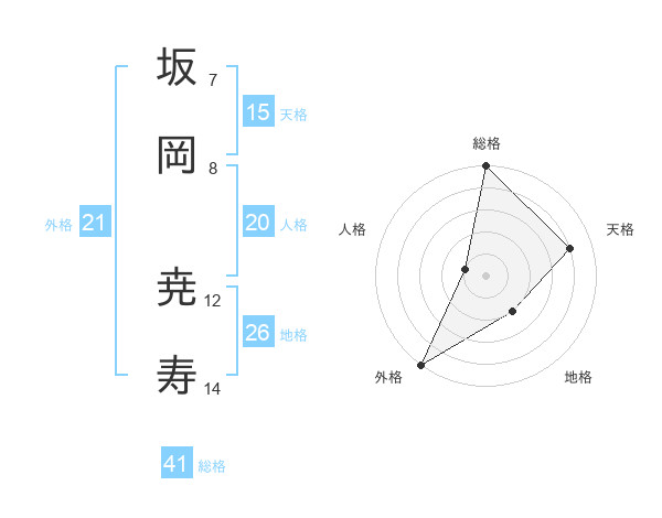坂岡 尭寿さんを姓名の画数から五運を鑑定