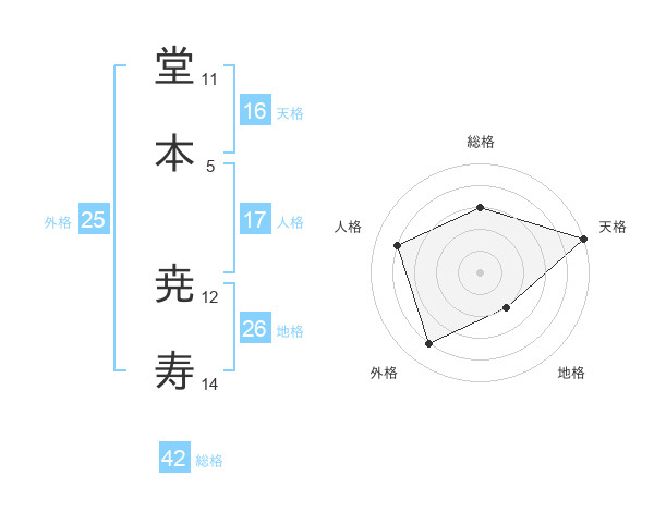 堂本 尭寿さんを姓名の画数から五運を鑑定