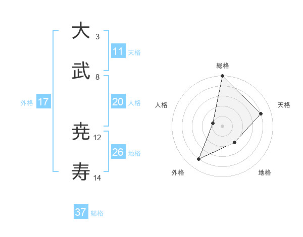 大武 尭寿さんを姓名の画数から五運を鑑定