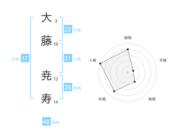 大藤 尭寿さんを姓名の画数から五運を鑑定