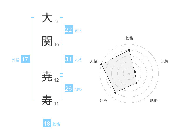 大関 尭寿さんの総格は48画の4点!