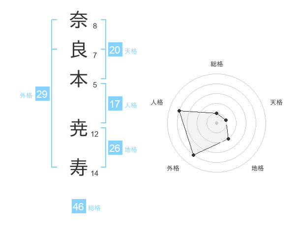 奈良本 尭寿さんの総格は46画の1点!