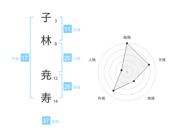 子林 尭寿さんの総格は37画の5点!