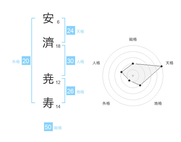 安濟 尭寿さんの天格は24画の5点!