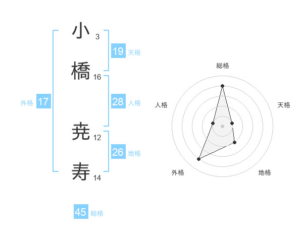 小橋 尭寿さんの外格は17画の4点!