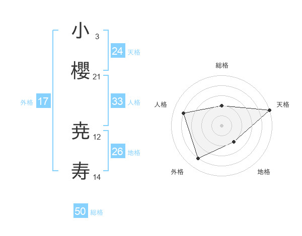 小櫻 尭寿さんを姓名の画数から五運を鑑定