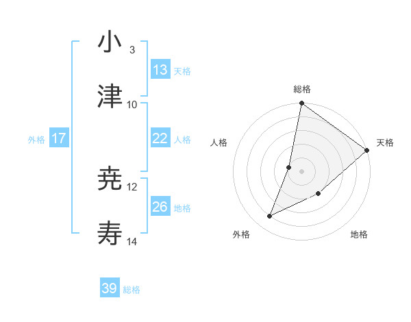 小津 尭寿さんを姓名の画数から五運を鑑定