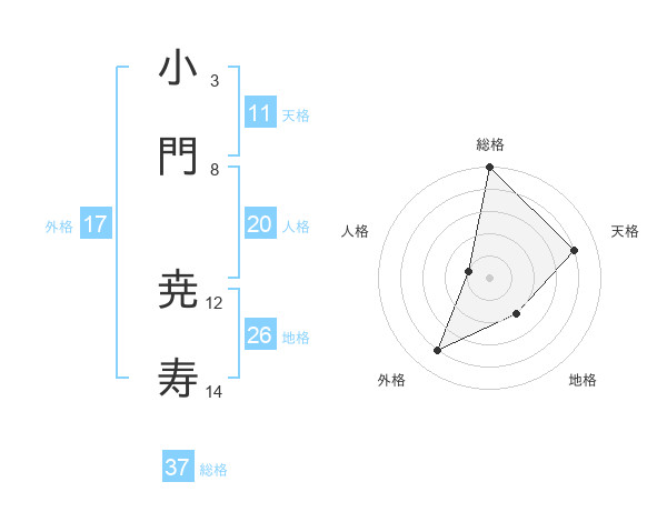 小門 尭寿さんの総格は37画の5点!