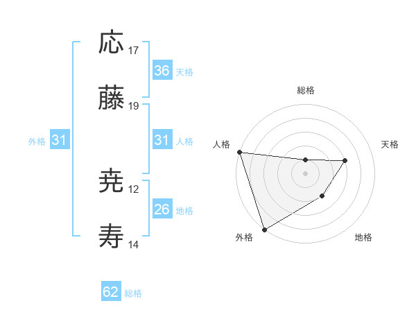 応藤 尭寿さんを姓名の画数から五運を鑑定