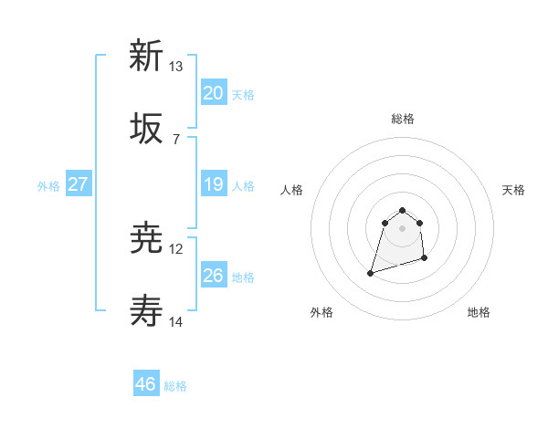 新坂 尭寿さんを姓名の画数から五運を鑑定
