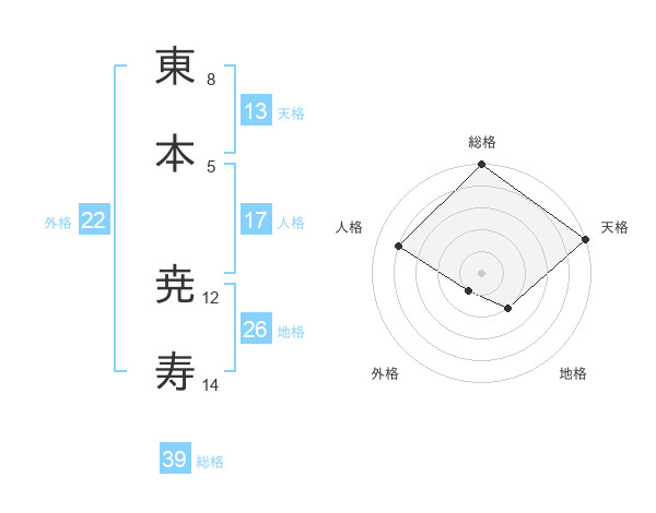 東本 尭寿さんの総格は39画の5点!