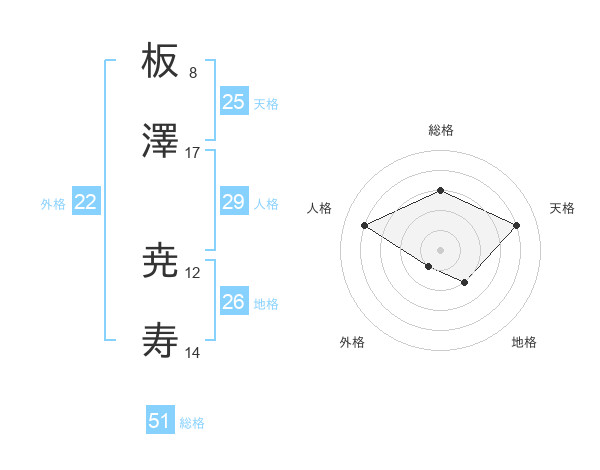 板澤 尭寿さんの総格は51画の3点!