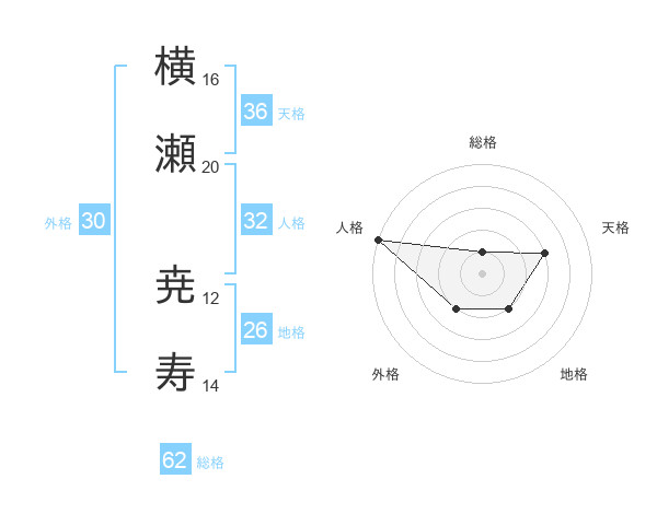 横瀬 尭寿さんの総格は62画の1点!