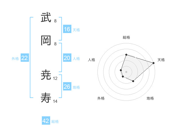 武岡 尭寿さんの総格は42画の3点!
