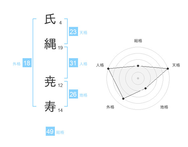 氏縄 尭寿さんの総格は49画の2点!