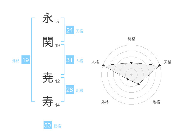 永関 尭寿さんの総格は50画の2点!