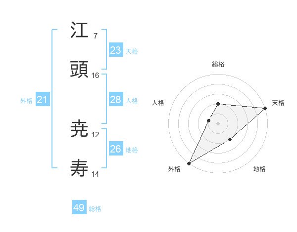 江頭 尭寿さんの天格は23画の5点!