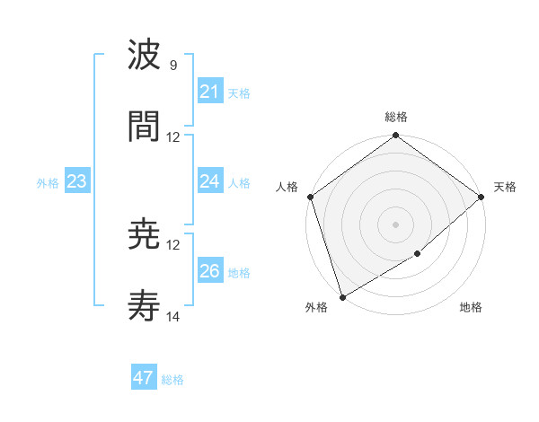 波間 尭寿さんの総格は47画の5点!